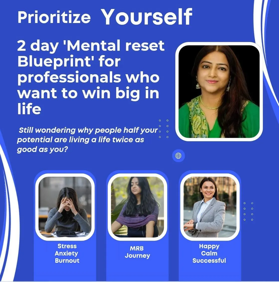 Itβs Called The 2-Day Mental Reset Blueprint Workshop . And Inside I'll Help Unblock your deep rooted concerns using My MB blueprint That will help you transform 180 degree and help you excel in all fields of your life.